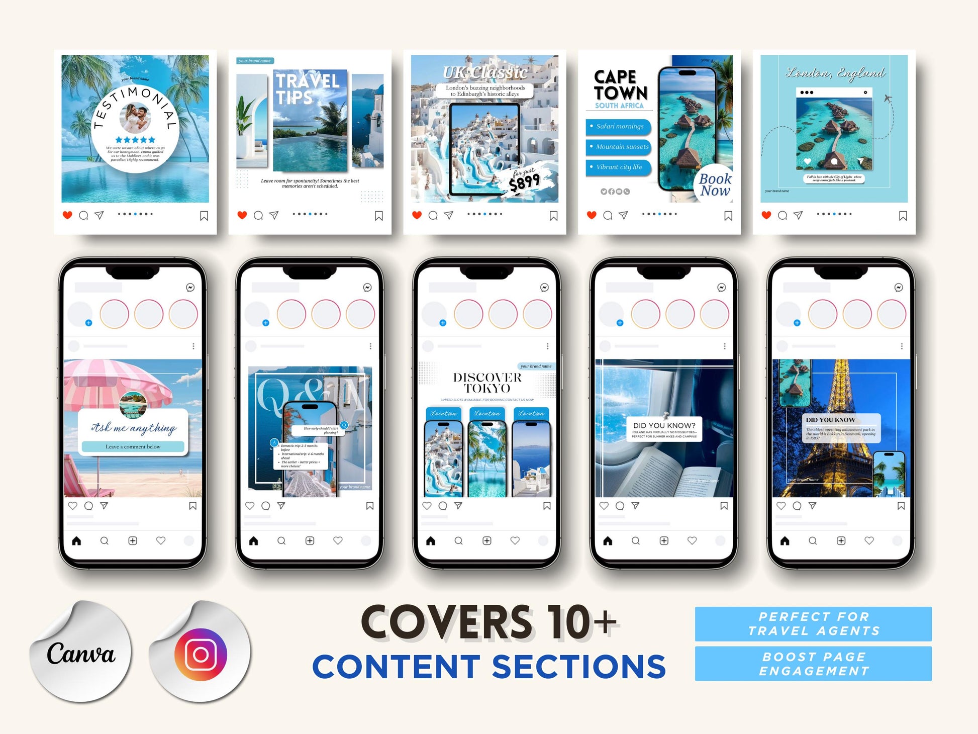 Travel Agent Social Media Templates: Canva Editable (Digital Download)