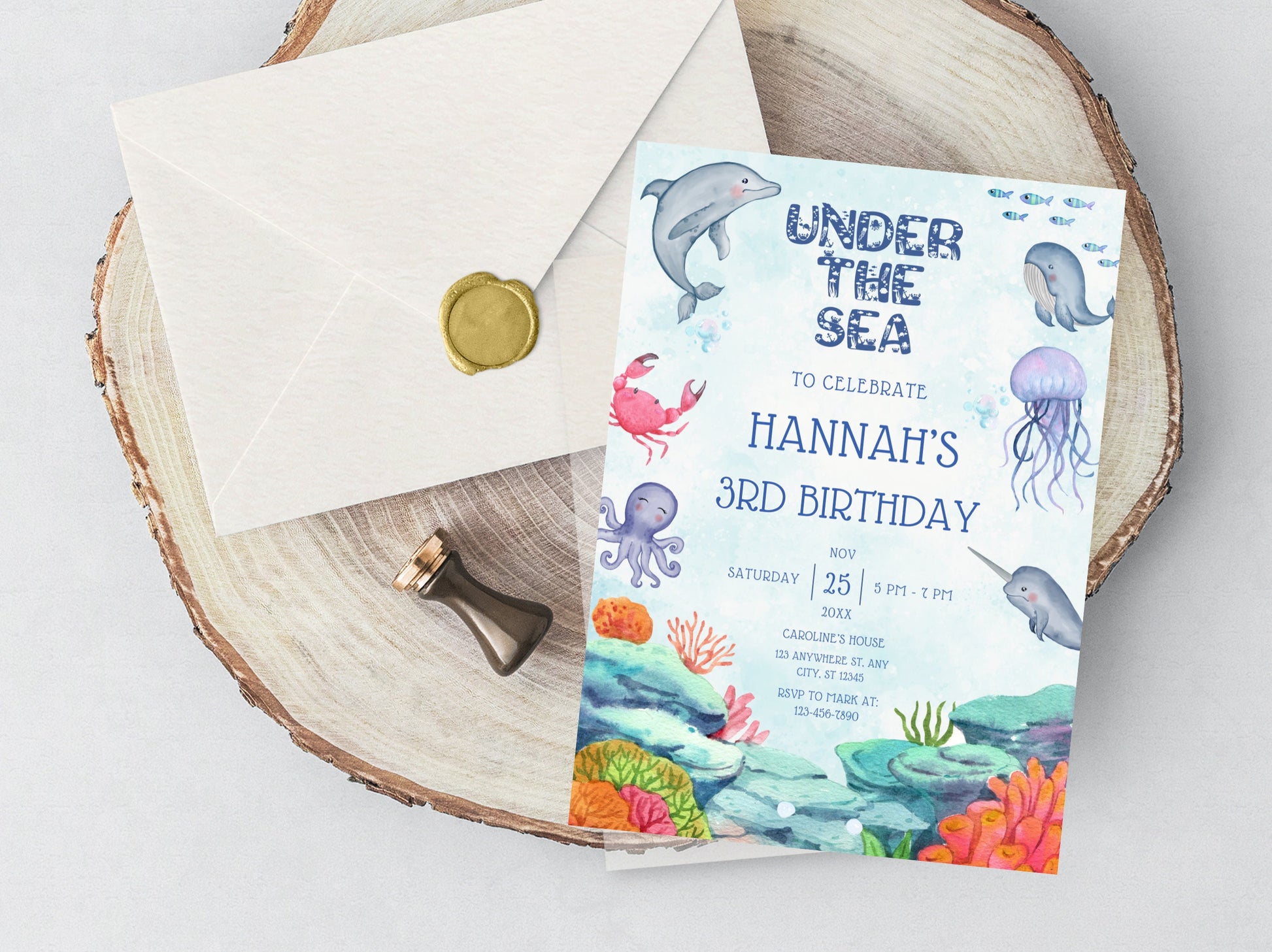Under The Sea Birthday Invitation Template, Editable Ocean Animals Party Invite, Magical Sea Life Invitation Template, Instant Download