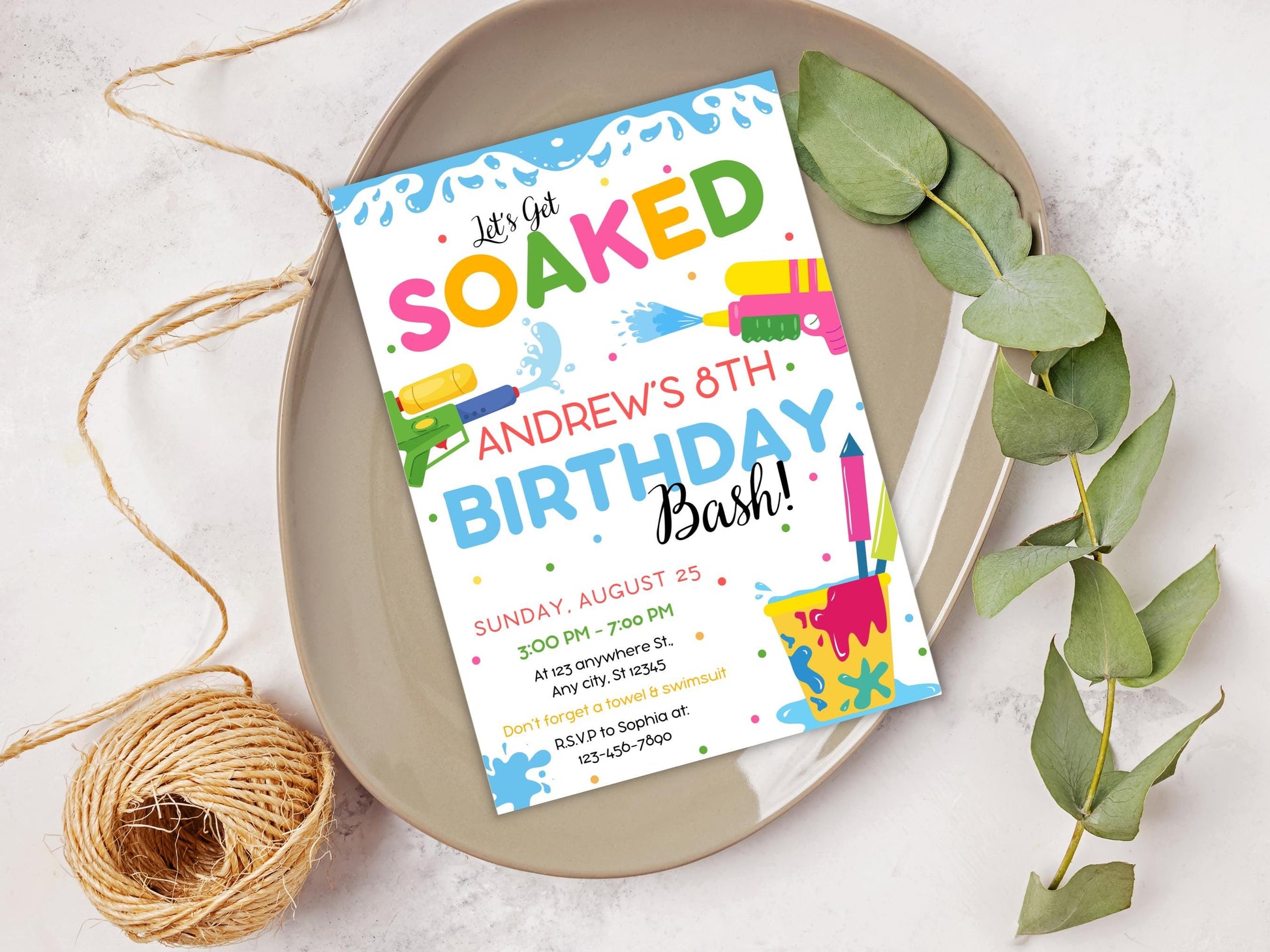 Water Gun Birthday Invitation Template, Editable Water Gun Invite, Water Party Invitation, Let's Get Soaked Invite, Water Gun Splash Party