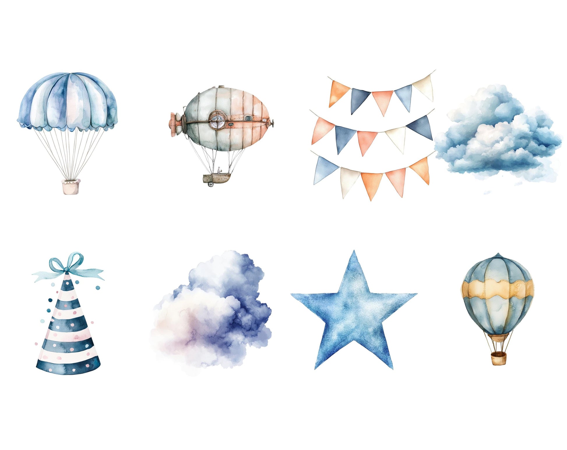 This set of 45 high-quality Air Transport clipart illustrations is ideal for infusing creativity and charm into any project. Showcasing high-resolution graphics with transparent backgrounds, these whimsical images are perfect for a variety of uses, from children's party invitations to nursery decorations, scrapbooking, and beyond. Whether you’re designing personalized gifts, digital planners, or social media graphics, these charming and adaptable clipart illustrations are guaranteed to elevate your work and bring a delightful flair to every project.