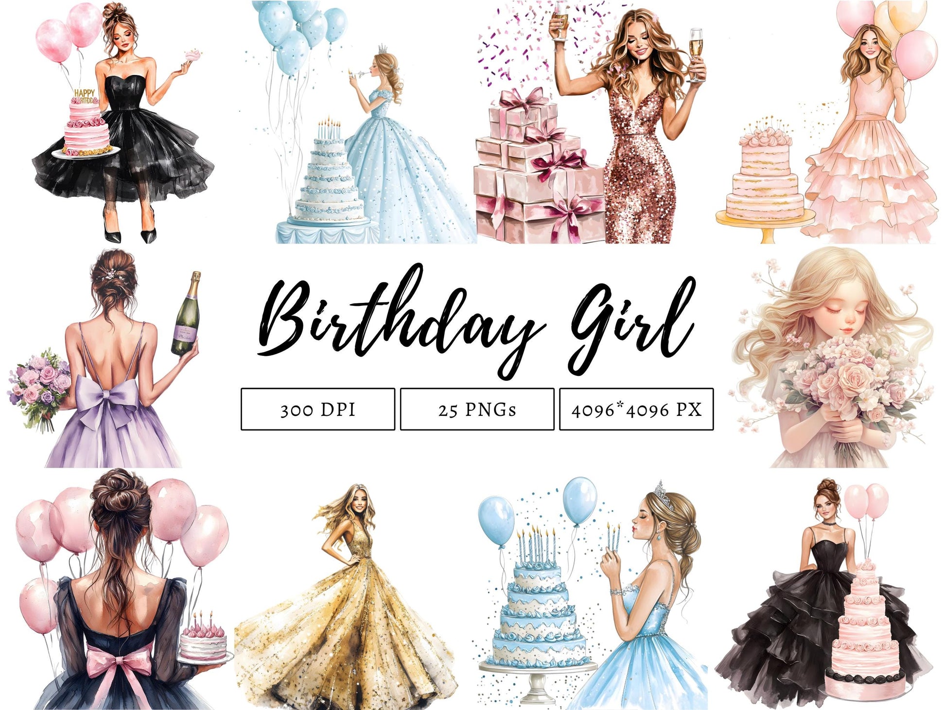- 25 premium Birthday Girl clipart image files with transparent backgrounds