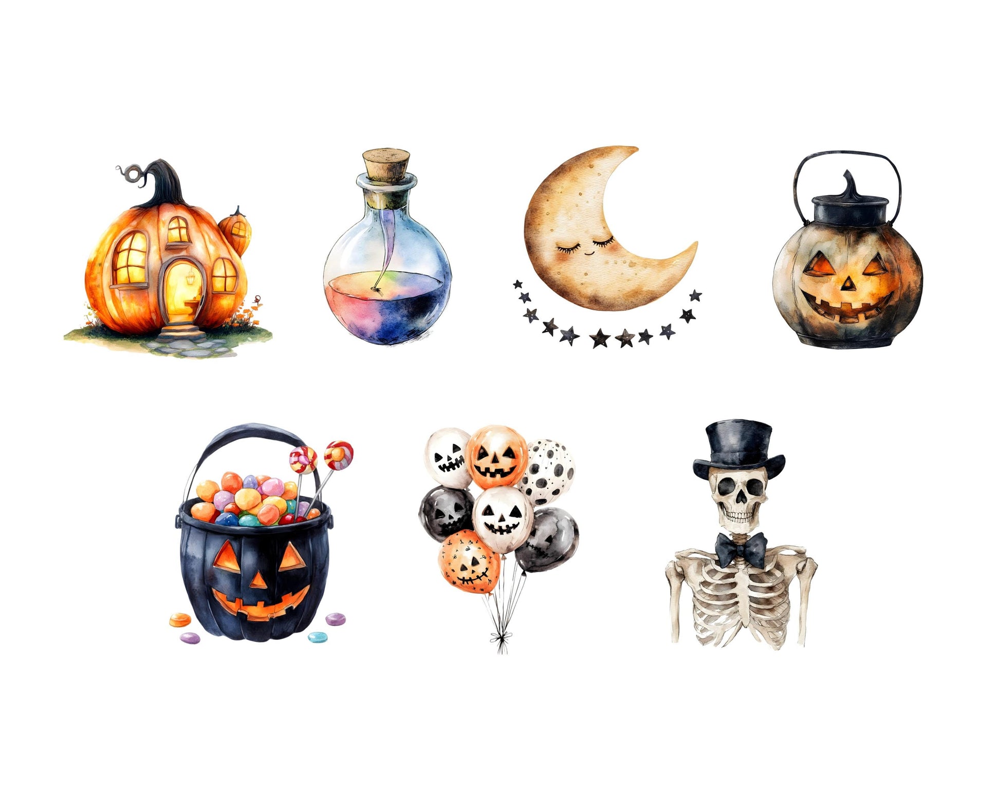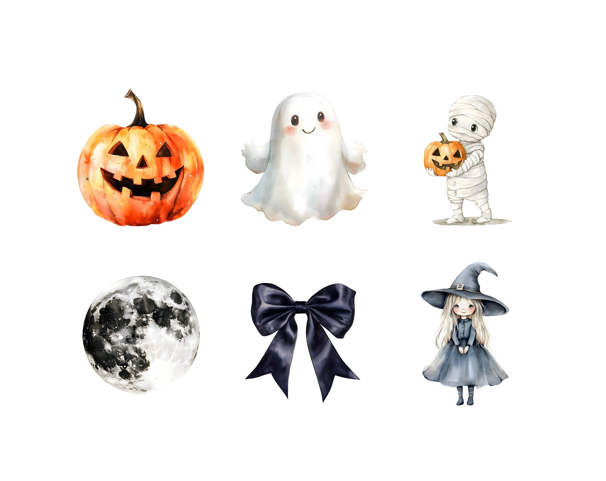 Watercolor Cute Halloween Clipart Bundle, Halloween Clipart png, Witch Clipart, Pumpkin CLipart, Black Cat Clipart, Halloween Decoration png