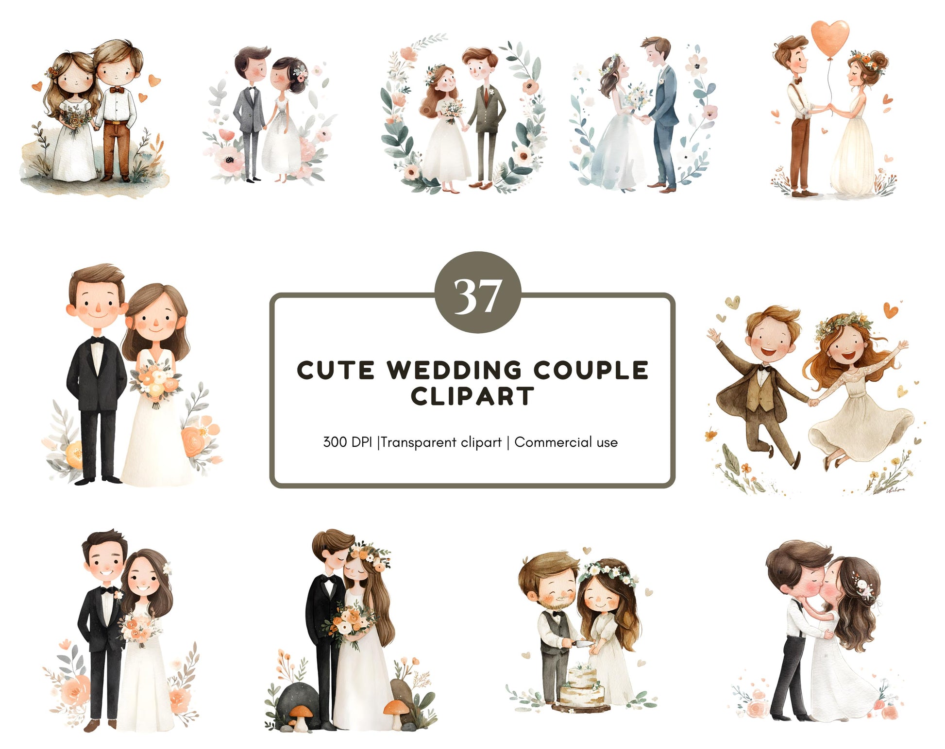 1) 37 high-quality Cute Wedding Couple clipart image files featuring transparent backgrounds