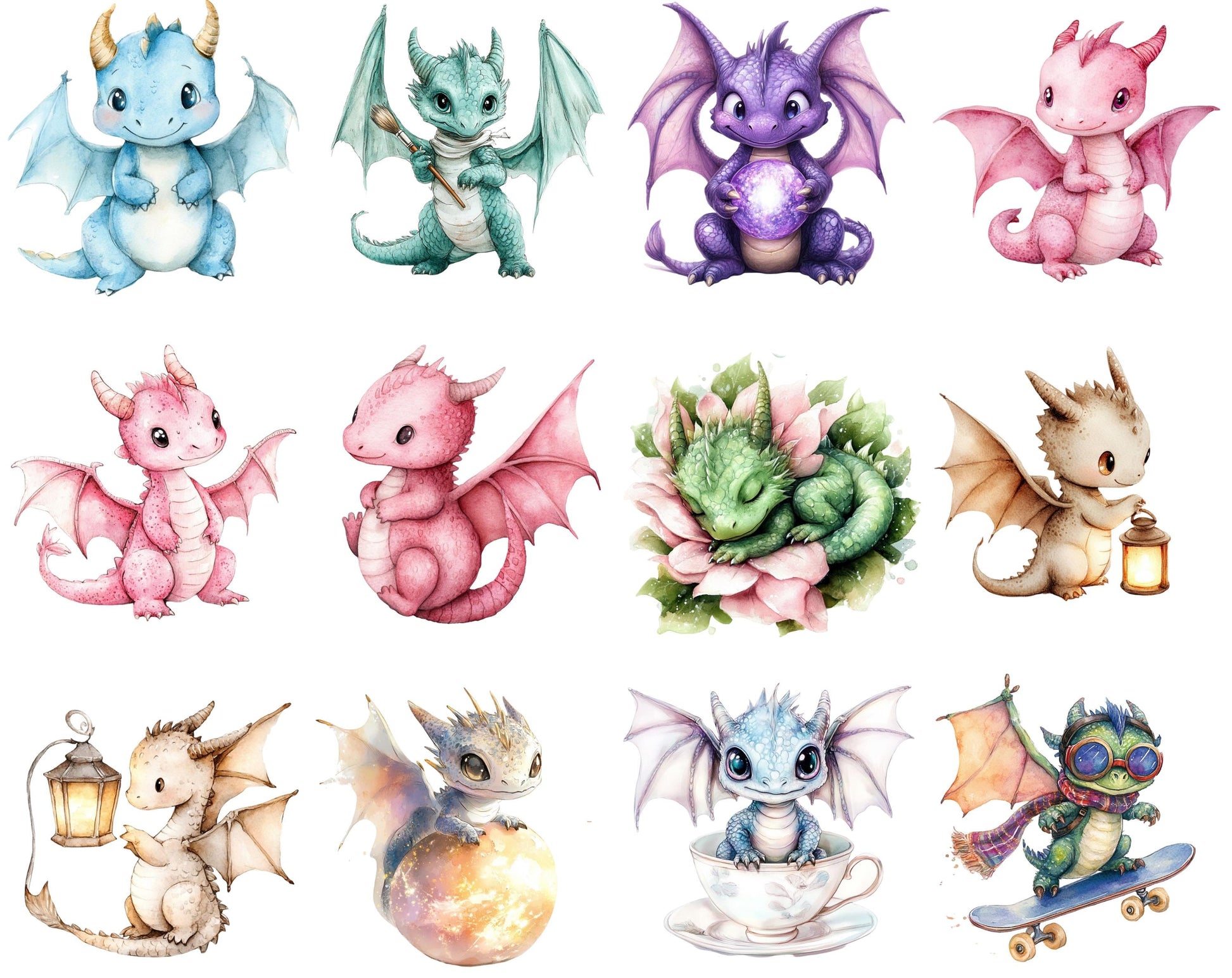 Watercolor Dragon Clipart png Bundle, Cute Dragon Clipart, Dragon Clipart png, Boys Clipart, Baby Shower Clipart, Nursery Clipart