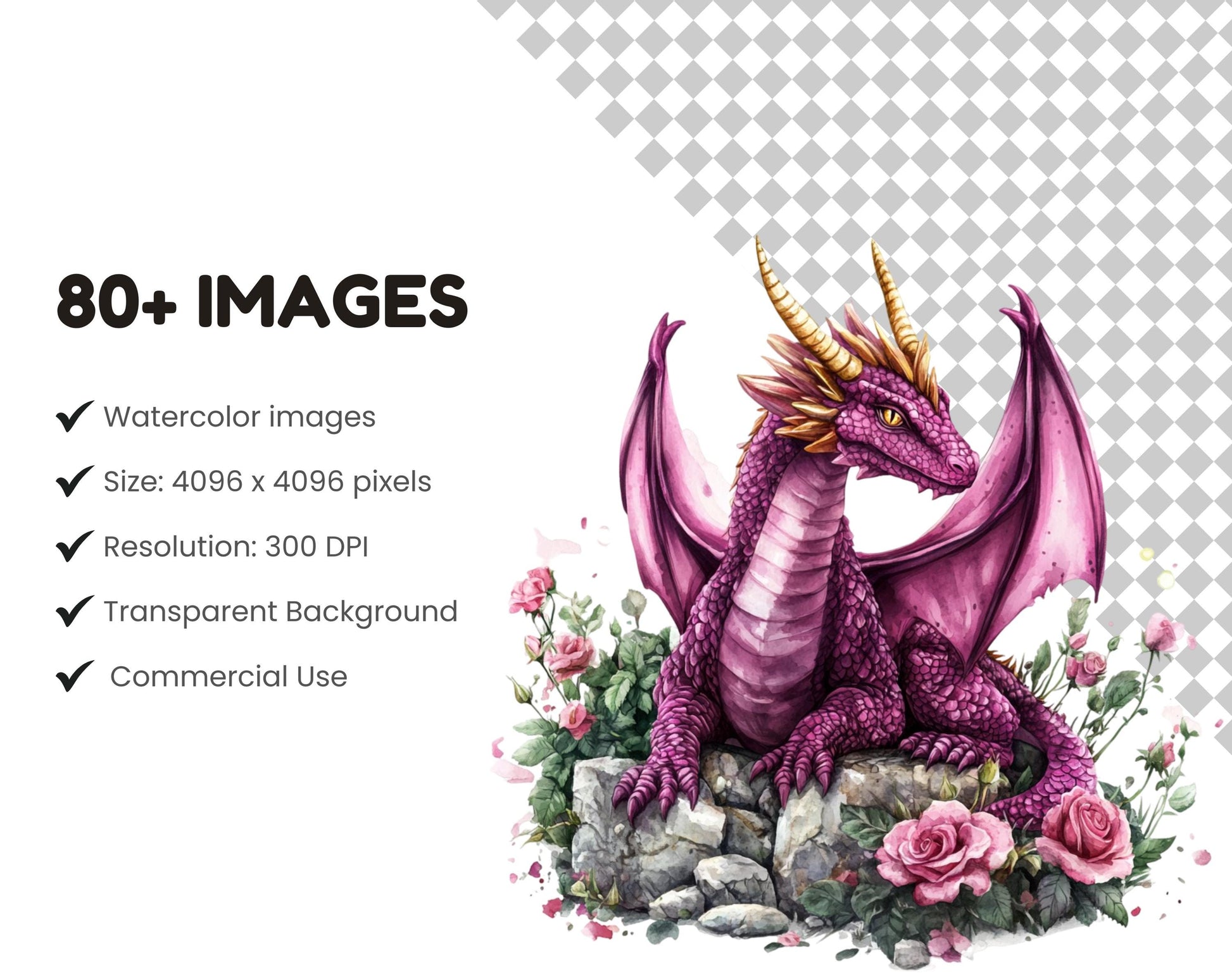 1) 85 high-quality Fantasy Dragon clipart image files featuring transparent backgrounds