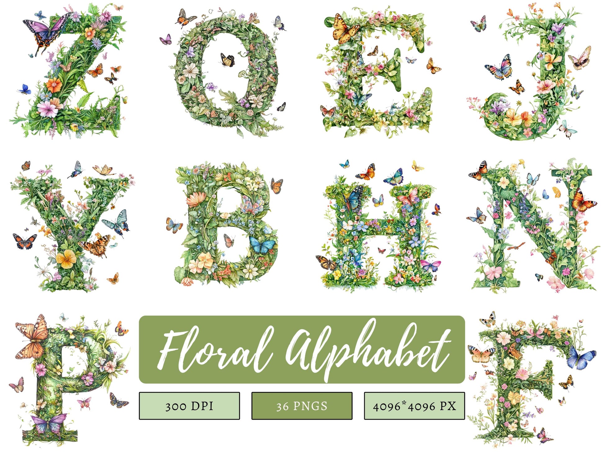Watercolor Floral Alphabet Collection Clipart, Spring Floral Alphabet Clipart, Floral Letter Clipart, Alphabet Clipart, Milestone Clipart