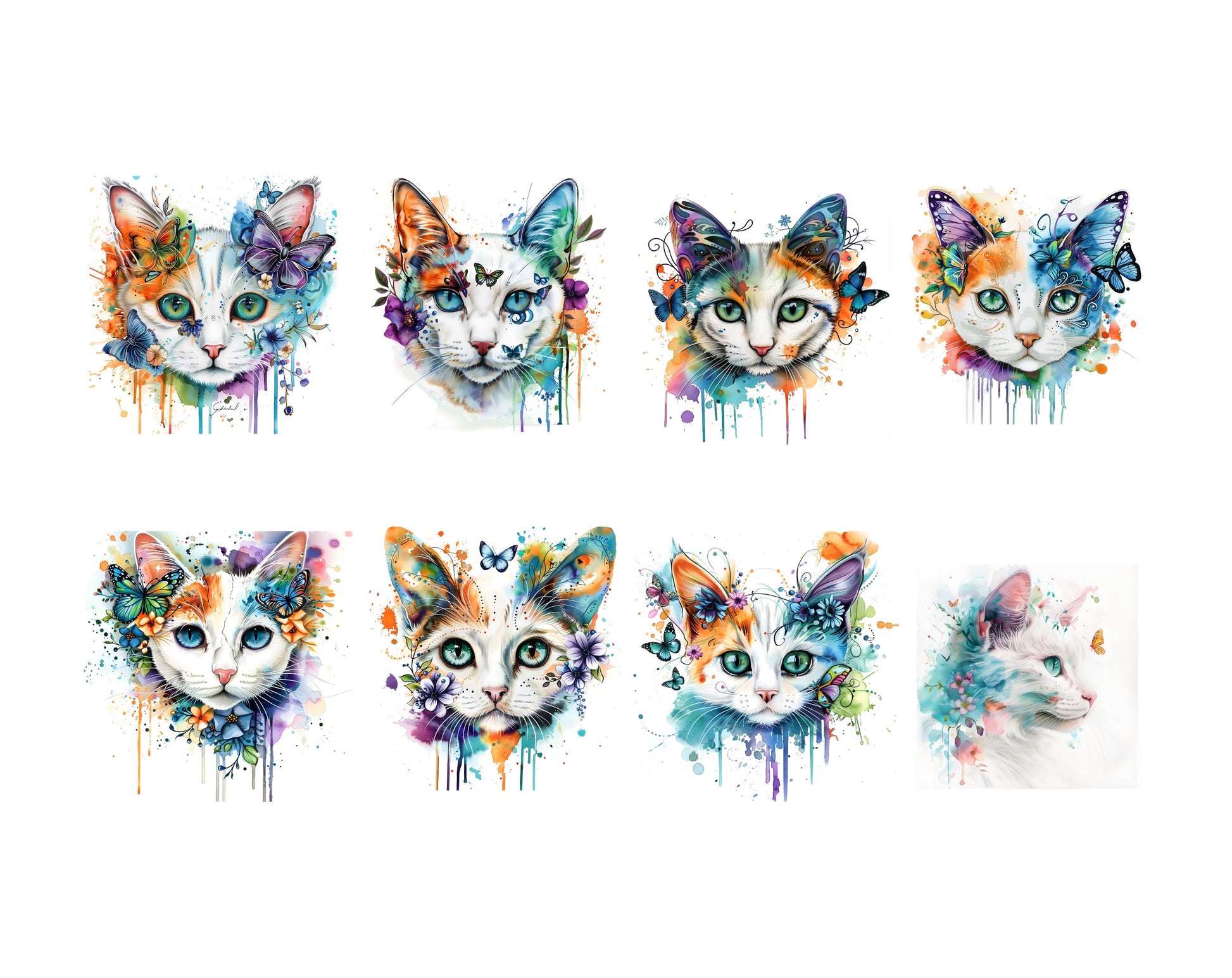 Watercolor Floral Cat Clipart Bundle, 57 Abstract Flower Cat png, Whimsical Printable Designs, High Quality PNGs & JPGs, Instant Download