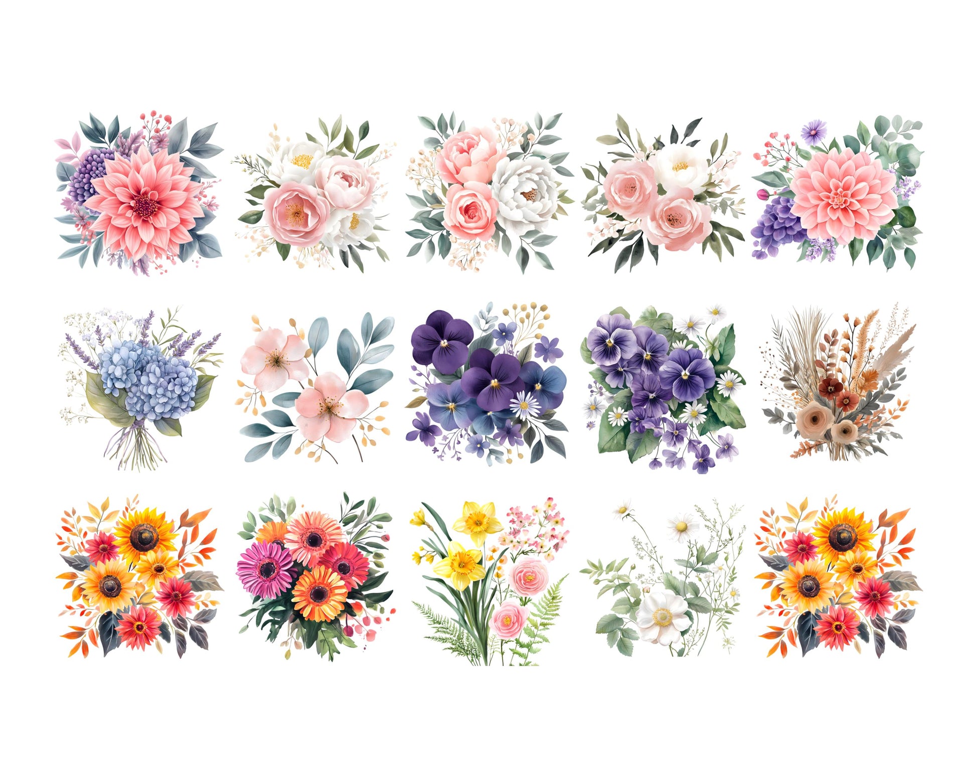 Watercolor Flowers Clipart png Bundle, Floral Pattern Clipart, Floral Element Clipart, Flower png Bundle, Watercolor Floral Clipart