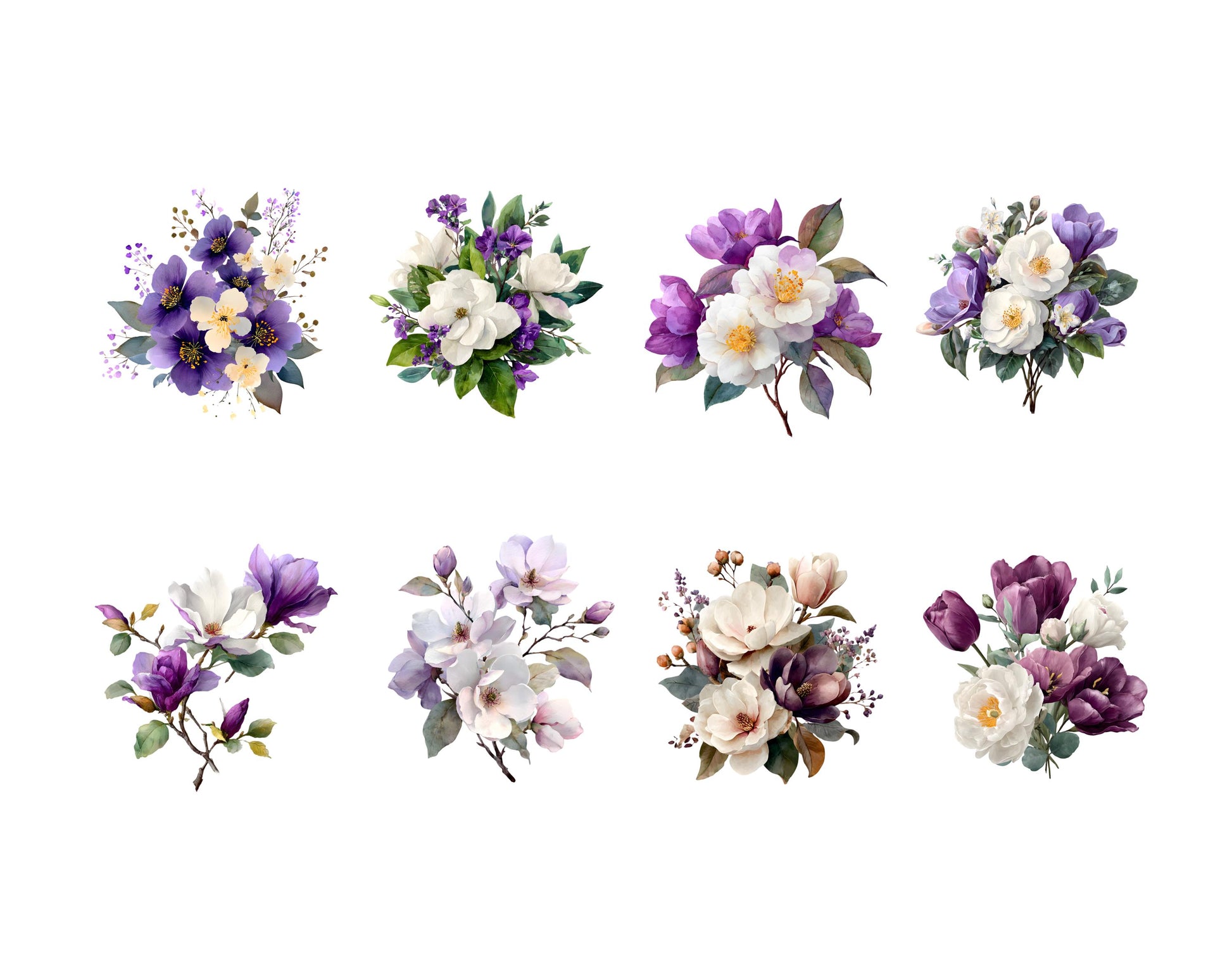 Watercolor Purple Flowers Clipart, Flowers Bouquet Clipart Bundle, Purple Flower png, Violet Flower Clipart, Floral png Bundle