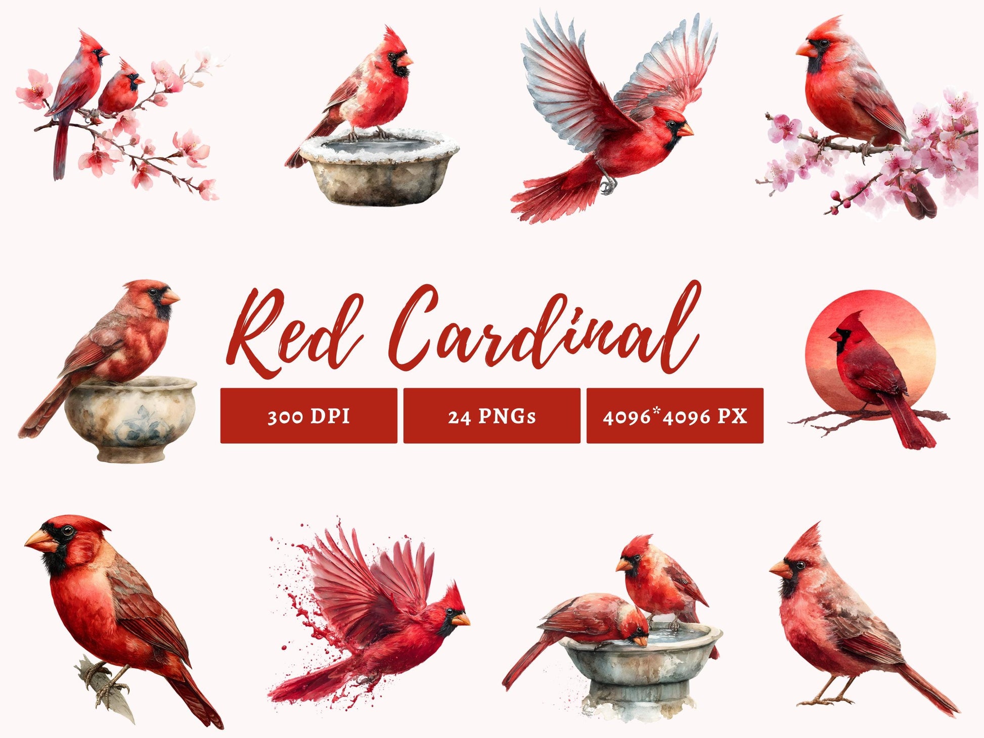 - 24 premium Red Cardinal clipart image files with transparent backgrounds