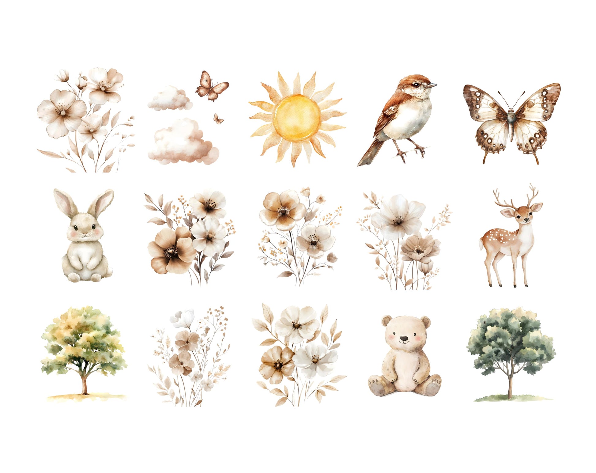 This set of 30 high-quality Woodland Animal clipart illustrations is ideal for infusing creativity and charm into any project. Showcasing high-resolution graphics with transparent backgrounds, these whimsical images are perfect for a variety of uses, from children's party invitations to nursery decorations, scrapbooking, and beyond. Whether you’re designing personalized gifts, digital planners, or social media graphics, these charming and adaptable clipart illustrations are guaranteed to elevate your work and bring a delightful flair to every project.