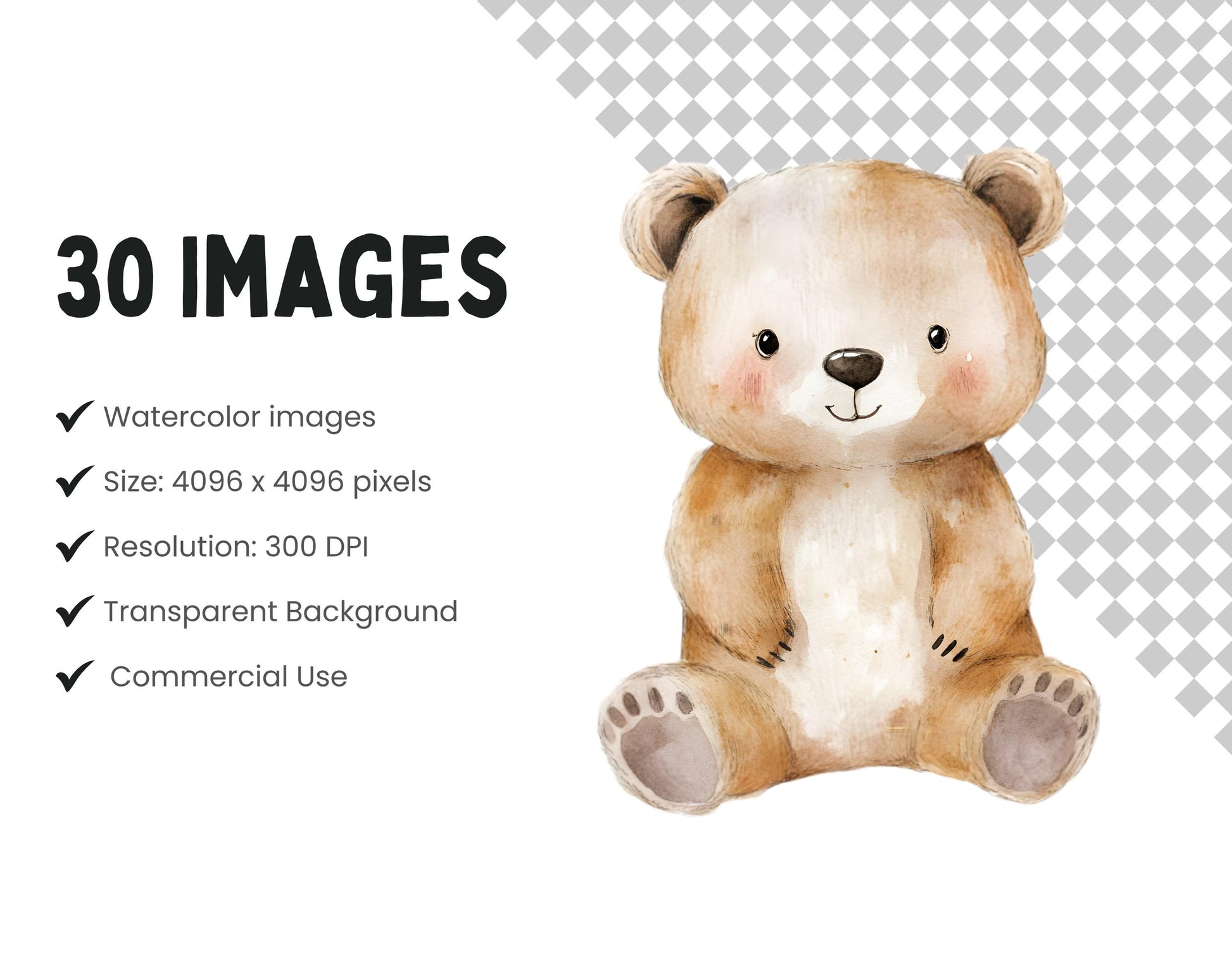 1) 30 high-quality Woodland Bear clipart image files featuring transparent backgrounds