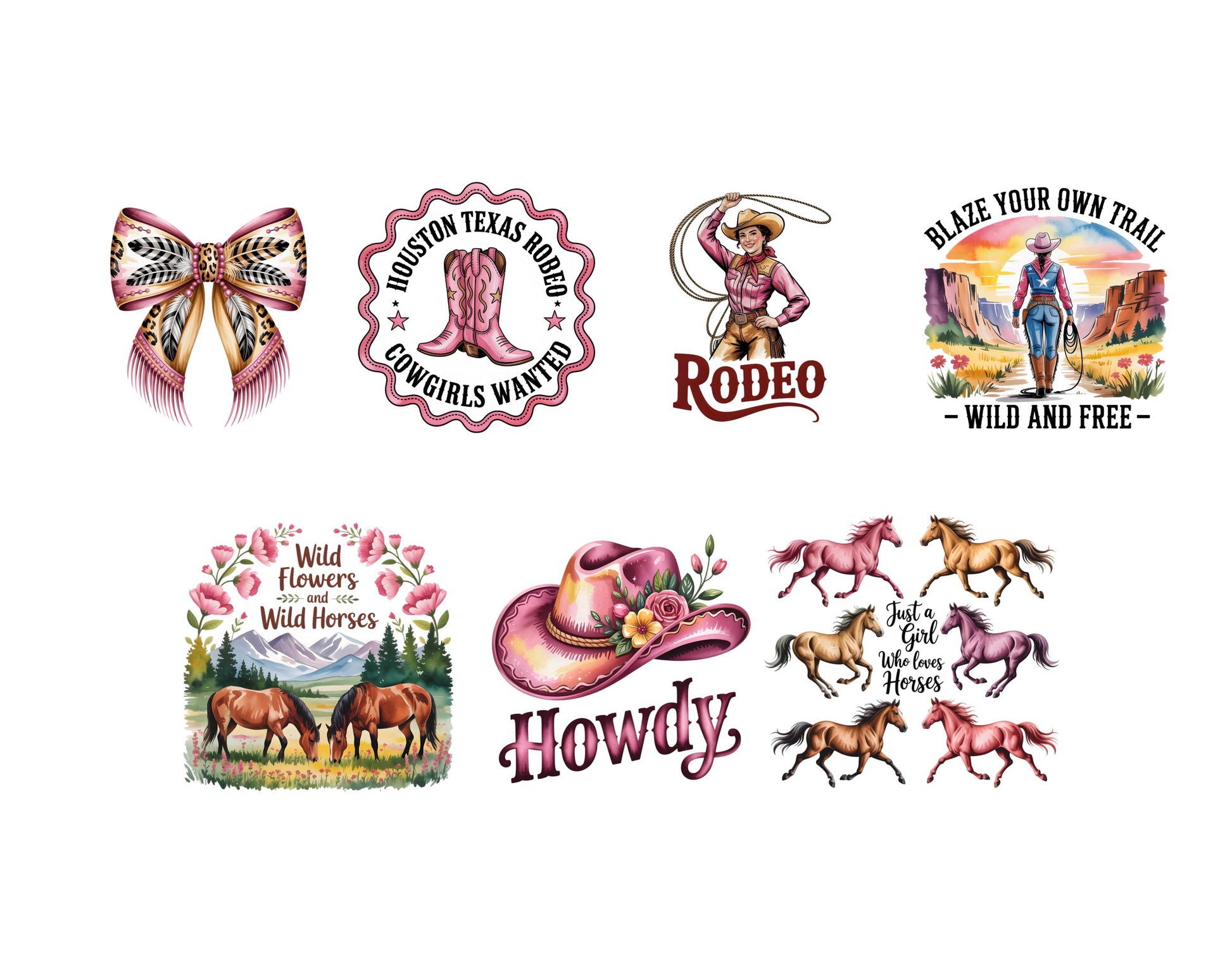 Western Cowgirl Clipart png Bundle, Western Coquette Clipart, Retro Western png, Western Cowgirl Sublimation Design, Rodeo Clipart png