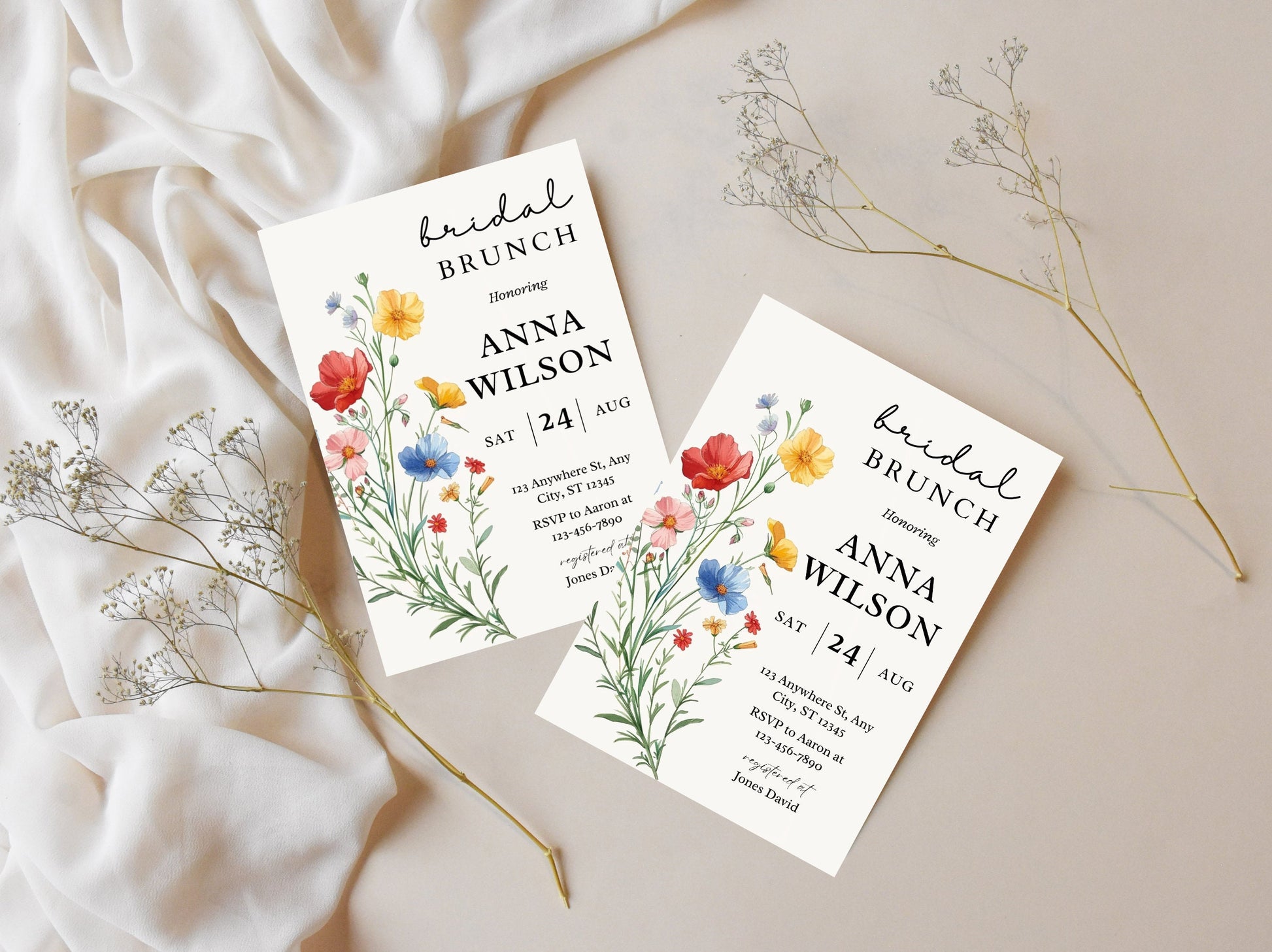 Sign up for a free Canva account and dive into the world of editable Wildflower Bridal Brunch Invitations. Let the countdown to your special day begin!