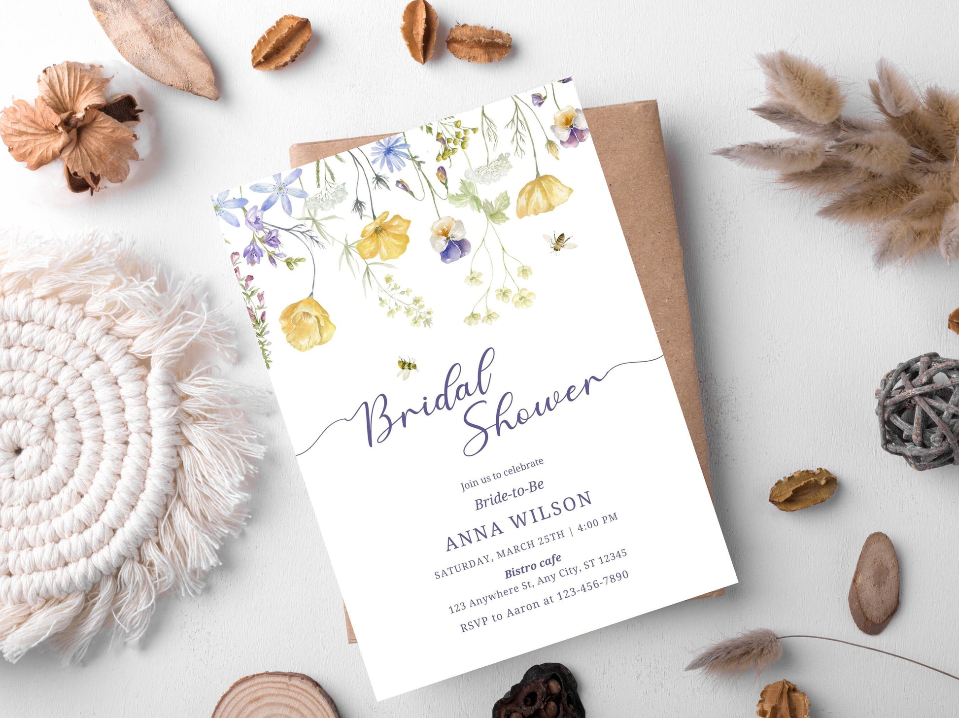 Wildflower Bridal Shower Invitation, Boho Bridal Shower Stationary, Floral Bridal Shower Invitation Template, Boho Floral Garden Party Evite