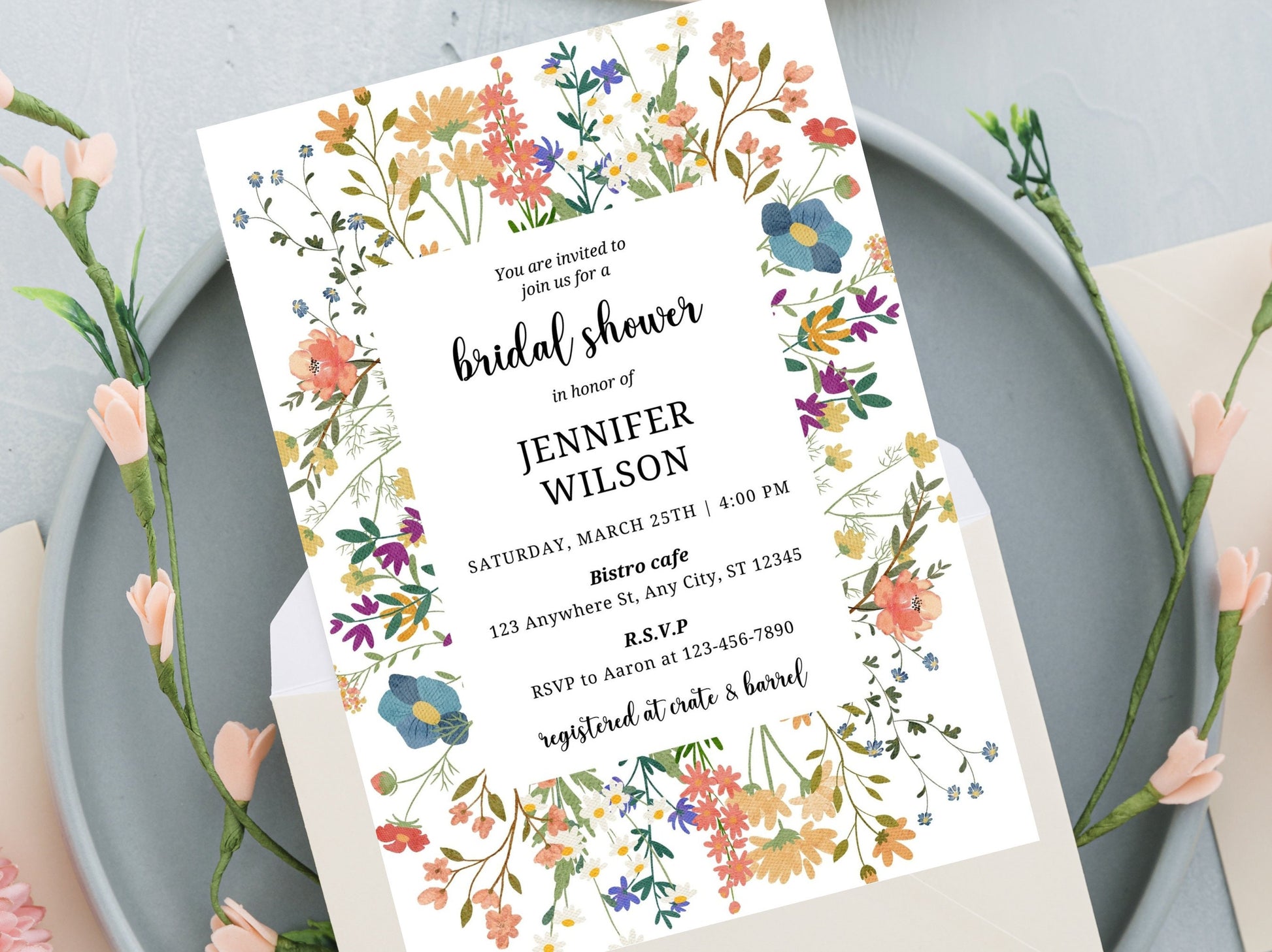 Wildflower Bridal Shower Invitation Template, Boho Floral Evite (PDF)