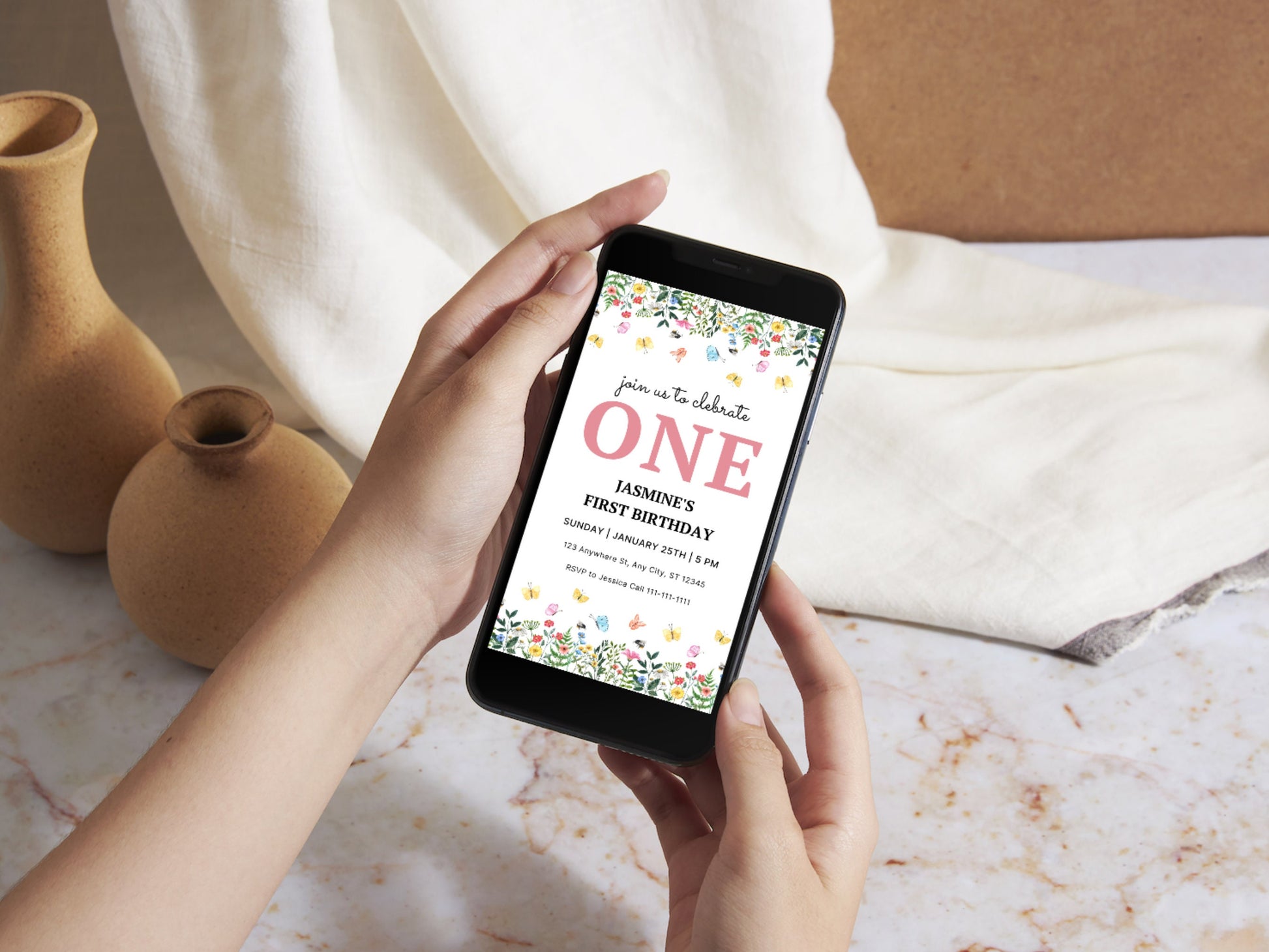 Wildflower First Birthday Invitation Template, Floral Garden (Instant Download)