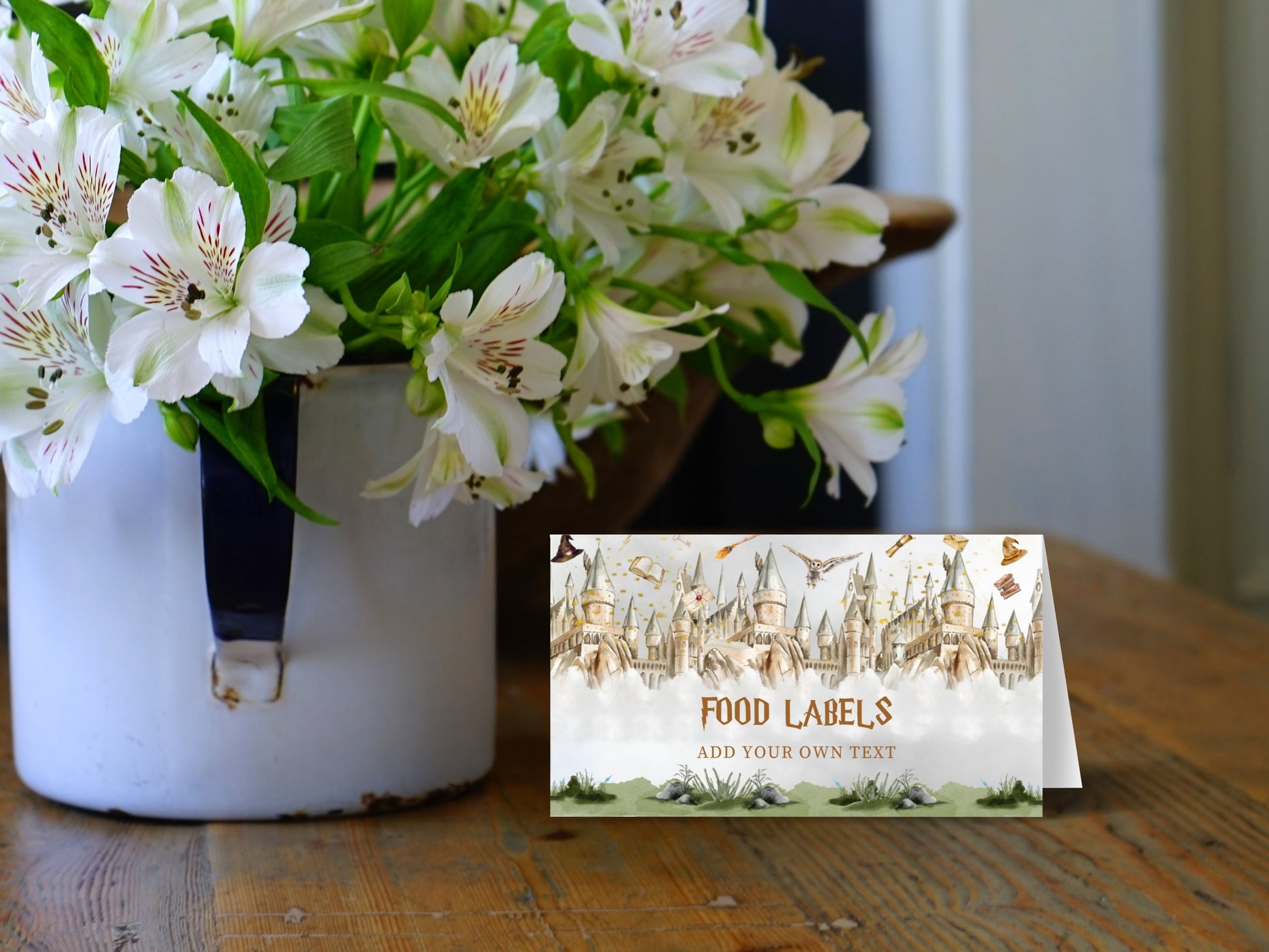 Wizard Birthday Party Food Label Template, Magic School Tented Food Labels, Wizardry Food Label Card, Instant Download