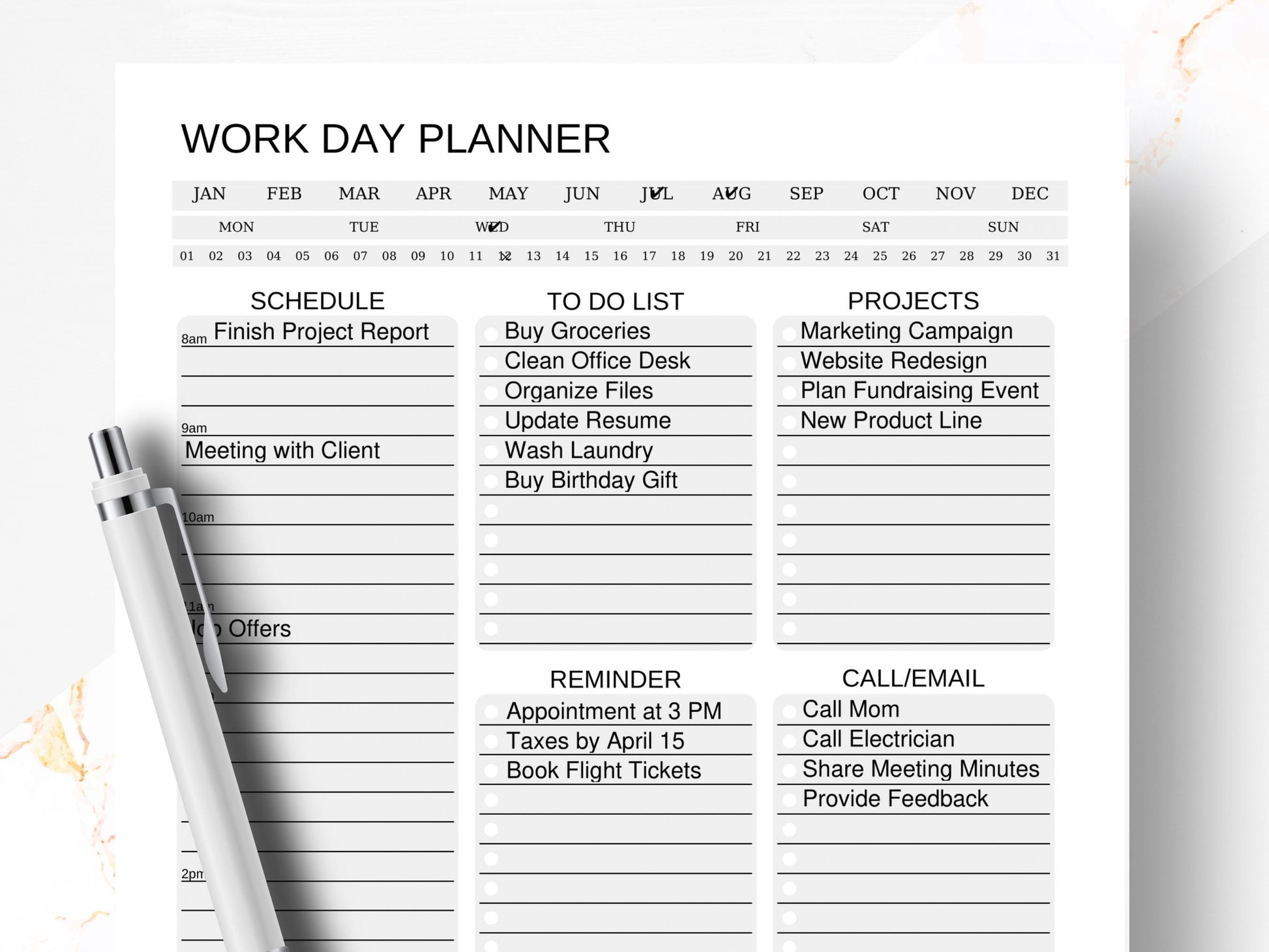 This Work Day Organizer is an essential tool for anyone looking to streamline their workday, from project managers to office professionals. Start each day with clarity and organization, and watch your productivity soar